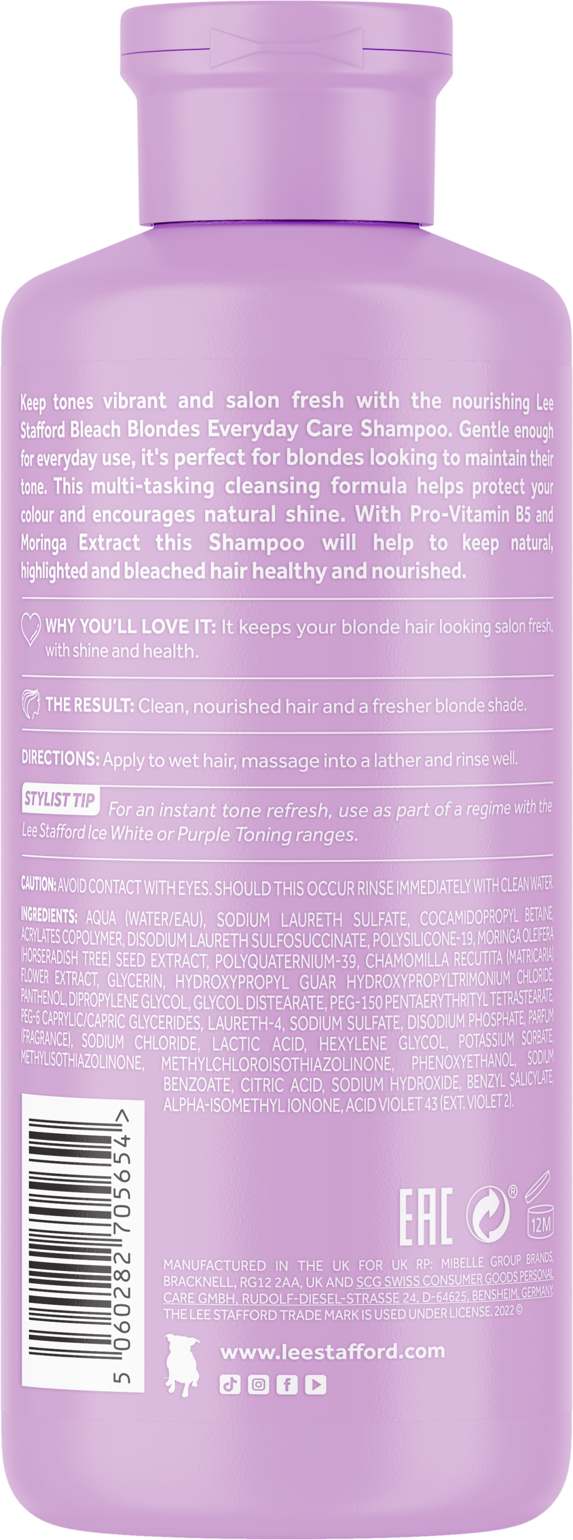 Ухаживающий шампунь для светлых волос, сохраняющий яркие, живые и салонно-свежие тона. Сохраните свой оттенок с помощью ежедневного шампуня для осветленных волос Lee Stafford. Разработанный для всех оттенков блонда – от естественно светлого до золотистого и ледяного платинового – этот тоносберегающий шампунь незаменим для поддержания естественно светлых и обесцвеченных блондинок и придания волосам глянцевого сияния.