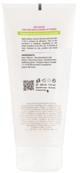 Гель-маску нанести равномерно на все лицо, избегая области вокруг глаз, закрыть пленкой и сухим полотенцем поверх нее на 15-20 мин. Длительность экспозиции зависит от типа кожи. Затем остатки снять влажным ватным диском и приступить к процедуре чистки. Подходит для всех типов кожи.