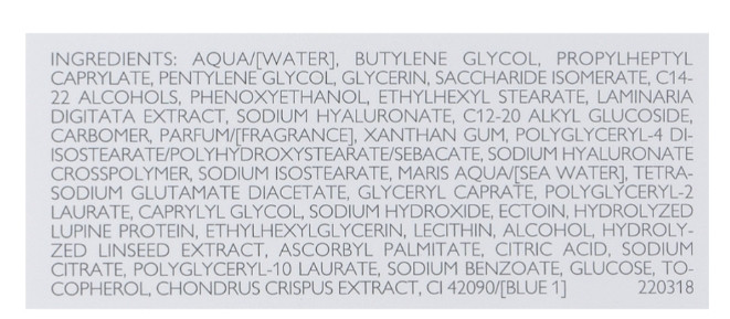 Эффективная комбинация трех видов гиалуроновой кислоты (высоко- и низкомолекулярная, а также кросс-линкд) способствует разглаживанию морщин и наполняет кожу влагой. Морские минералы, экстракты водорослей поддерживают активность и молодость клеток. SRC-complex значительно снижает уровень чувствительности кожи и успокаивает ее. Снимает следы усталости, разглаживает морщины сухости, способствует выравниванию тона кожи лица. Кожа выглядит наполненной и молодой.