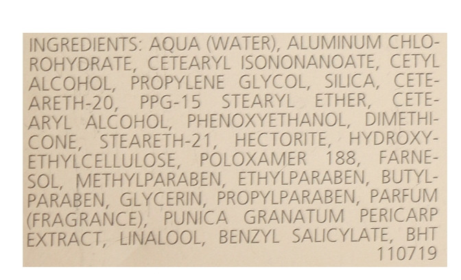 Содержит экстракт граната, содержащий пуникалагин — уникальный антиоксидант, защищающий кожный покров от неблагоприятного воздействия токсинов и факторов окружающей среды. Гранат богат фолиевой кислотой, усиливающей барьерную функцию клеток. Дезодорант не содержит агрессивные вещества и прекрасно подойдет даже для чувствительной тонкой кожи.