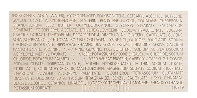 Активные компоненты: SkinNova SC Technology, Комплекс активных ингредиентов из экстракта облепихи, экстракт из цветков клевера, экстракт травы Эвглены, масло купуасу, гиалуроновая кислота (короткой и длинной цепи), витамин Е пентавитин, бамбуковый уголь, SkinNova SC Technology.