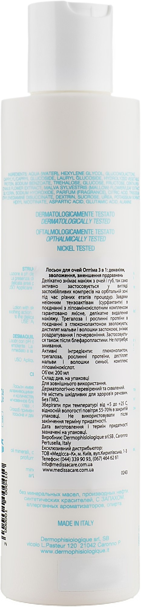Лосьон для глаз 3 в 1: демакияж, увлажнение, успокоение кожи / Lozione Occhi Optyma