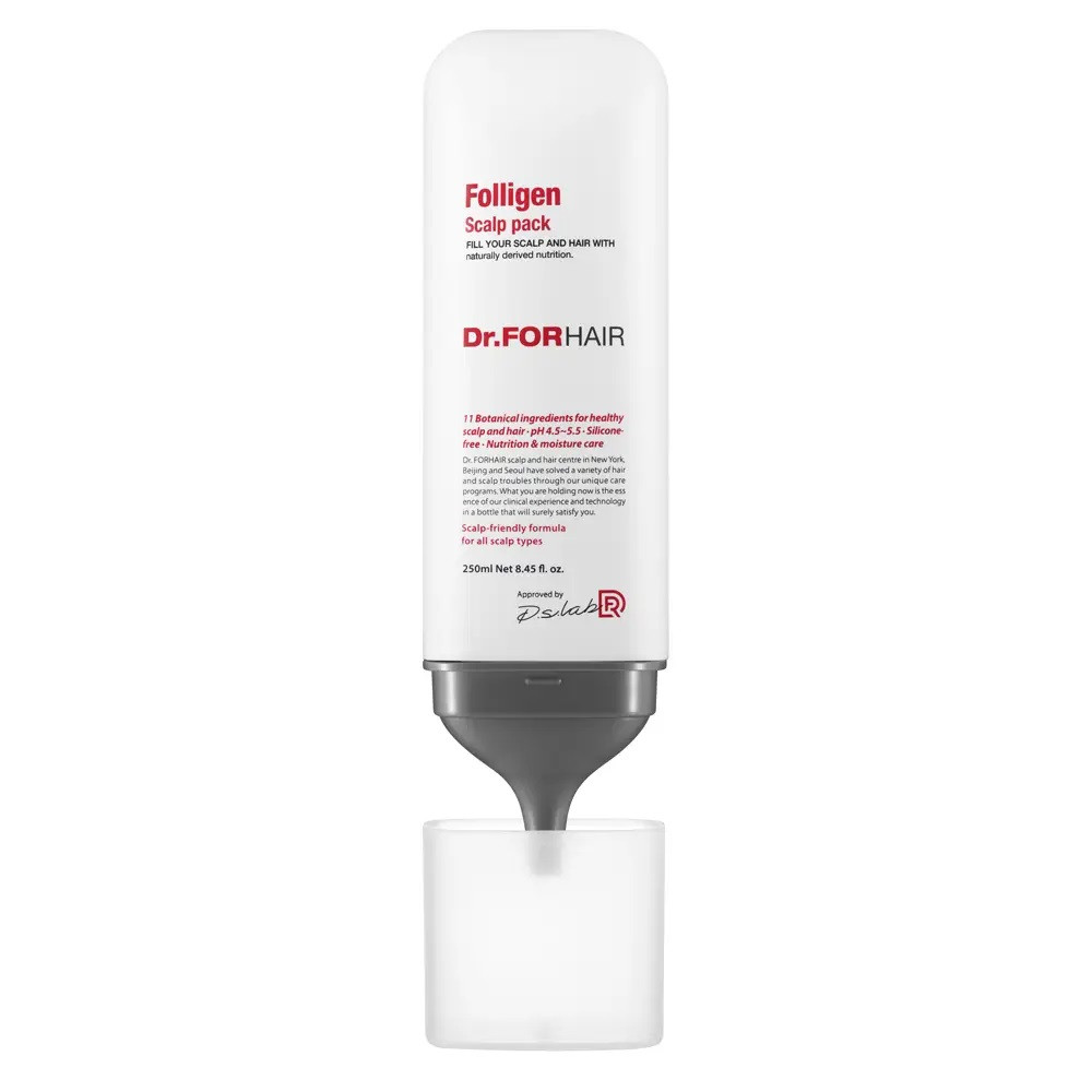 Благодаря технологии липосомального инкапсулирования усиливается проникающая способность активных ингредиентов в волосяные фолликулы, тем самым повышается их эффективность в борьбе с выпадением волос. Маска Dr.FORHAIR Folligen Scalp Pack имеет слабокислый уровень pH (4.5 – 5.5), не содержит силиконов и не утяжеляет корни волос. Рекомендуется использовать в комплексном уходе за истонченными волосами, склонными к выпадению.