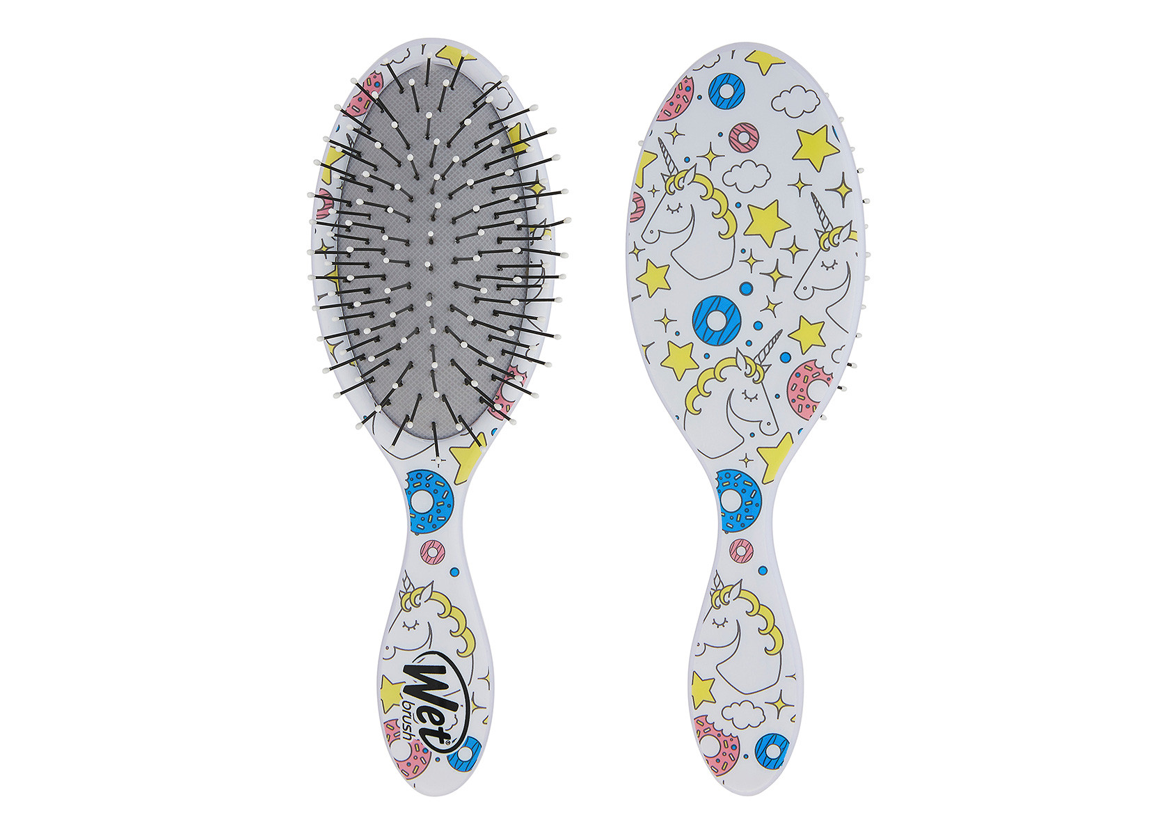 Расческа Wet Brush одинаково хорошо подходит для расчесывания влажных и сухих, прямых и кудрявых, тонких и густых, нарощенных и искусственных волос. Широкий выбор принтов, ярких дизайнов и цветов, а также лицензированных коллекций и коллабораций выгодно отличает щетки WetBrush от других.
