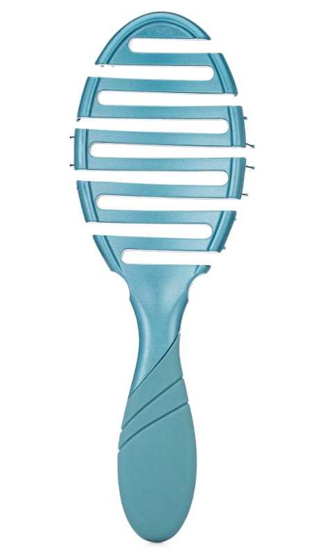 Уникальная расческа Wet Brush Flex Dry позволяет высушить волосы в два раза быстрее обычного. Ее корпус и зубчики выполнены из безопасных и гипоаллергенных материалов. Удобно ложится в ладонь и не скользит при использовании. Подходит для ухода за волосами любого типа. Благодаря открытой форме корпуса обеспечивается равномерный поток воздуха, что способствует более быстрой сушке и укладке волос.