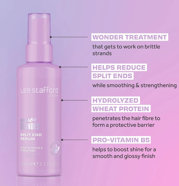 Сыворотка для кончиков волос Lee Stafford Bleach Blondes Split End Serum – идеальное решение для борьбы с поврежденными прядями и иссеченными кончиками. Это несмываемое средство станет незаменимой частью вашей ежедневной рутины ухода за волосами, особенно для обесцвеченных светлых волос. Сыворотка оказывает глубокое влияние на поврежденные кончики, разглаживая, кондиционируя и уменьшая секуемость.