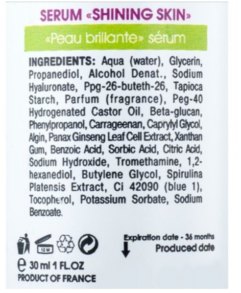 Сбалансированная формула средства разработана на основе экстрактов спирулины, маниоки и женьшеня, гиалуроновой кислоты.