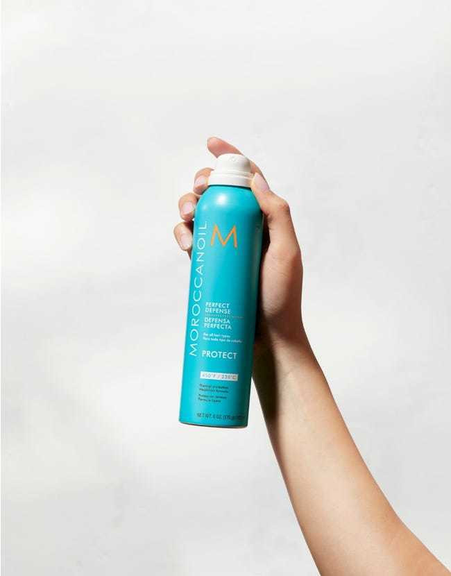 Термозащитный спрей Идеальная защита Moroccanoil Perfect Defence Protect 75 ml – для укладки, которая сохраняет здоровье волос во время стайлинга, защищая их от воздействия высоких температур любого типа до 230 °C. Этот совершенно невесомый, насыщенный аргановым маслом, спрей идеально сочетается с любыми стайлинговыми продуктами. Благодаря уникальной формуле с сухой текстурой спрей можно использовать для обновления укладки на второй день. Фен, плойка, щипцы – спрей надежно защищает волосы от повреждений во время укладки любыми средствами горячей укладки, а также придает волосам мягкость и блеск, оставляя естественно подвижными.