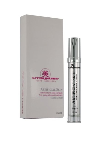 Інноваційна лінія Artificial Skin – результат 10 років досліджень лабораторії UTSUKUSY MEDICAL. Концентрована сироватка є потужним антивіковим засобом з ефектом філеру проти зморшок. Після застосування сироватки вирівнюється рельєф шкіри, помітно знижується кількість зморшок, їх глибина і довжина, зникають дрібні заломи, а більш глибокі стають менш вираженими. Завдяки унікальній здатності утримувати вологу всередині клітин шкіри, сироватка миттєво відновлює баланс шкіри, та усуває сухість, шелушіння та ознаки холодової алергії. Помітно відновлює втрачений об’єм губ. Ідеально підходить для чутливої шкіри.