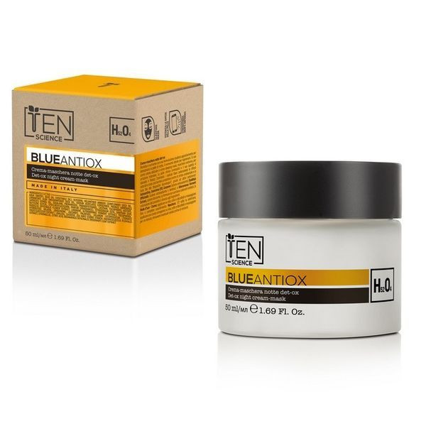 Ten Science Blue Antiox Night Cream використовується як звичайний крем або як маска для інтенсивної дії. М'який та поживний склад, спеціально розроблений для детоксикації шкіри вночі, ідеальний час для регенерації. Шкіра відновлює свою яскравість і зовнішній вигляд, стає відпочиваючим та свіжим. Спосіб застосування: Після вечірнього очищення шкіри нанесіть маску на шкіру обличчя, зачекайте 1-2 хвилини, поки крем-маска повністю вбереться і лягайте спати. Зранку необхідно змити маску теплою водою. Об'єм: 50 ml Виробництво: Італія