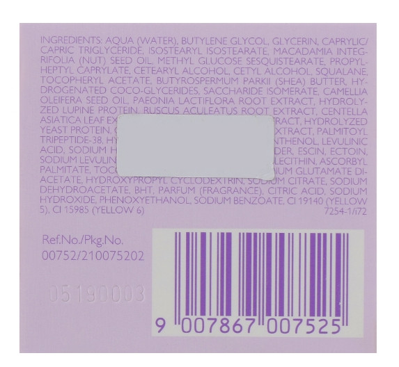 Активні компоненти: натуральний екстракт півонії, високоефективний пептид, екстракт центели азіатської, цінна олія камелії, гіалуронова кислота, SRC-complex, пентавітін, бісаболол, алое віра, вітамін Е, олія макадамії, олія ши.