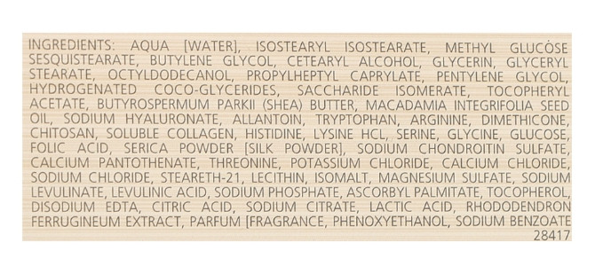 Активні компоненти: SkinNova SC Technology, екстракт шовку, гіалуронова кислота, вітамін Е, екстракт стовбурових клітин рододедрону, олія макадамії, олія ши.