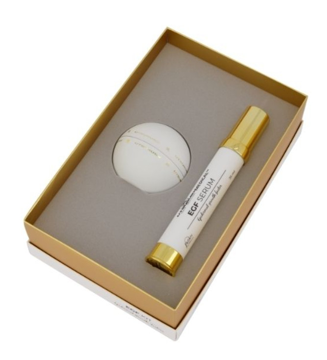 Дія: після застосування комплексу (сироватка + крем) підвищується пружність та еластичність шкіри, зменшується глибина та кількість зморшок, зміцнюється овал обличчя, шкіра випромінює здорове сяйво, зменшуються ознаки куперозу.