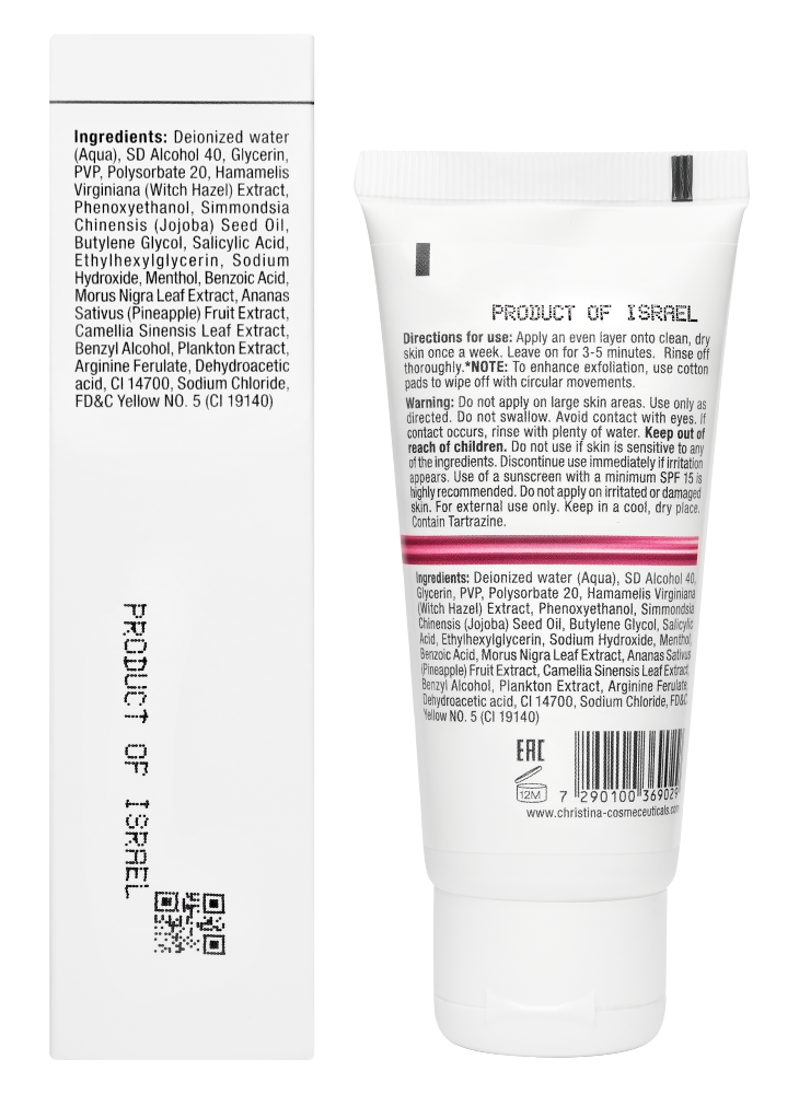 Планктонні водорості - одноклітинні водорості - виробляють велику кількість кисню і постачають його в клітини. Комплекс на основі саліцилової кислоти, екстракту шовковиці та ананасу м'яко відлущує і вирівнює тон. Гамамеліс знімає почервоніння та запалення, сприяючи загоєнню.