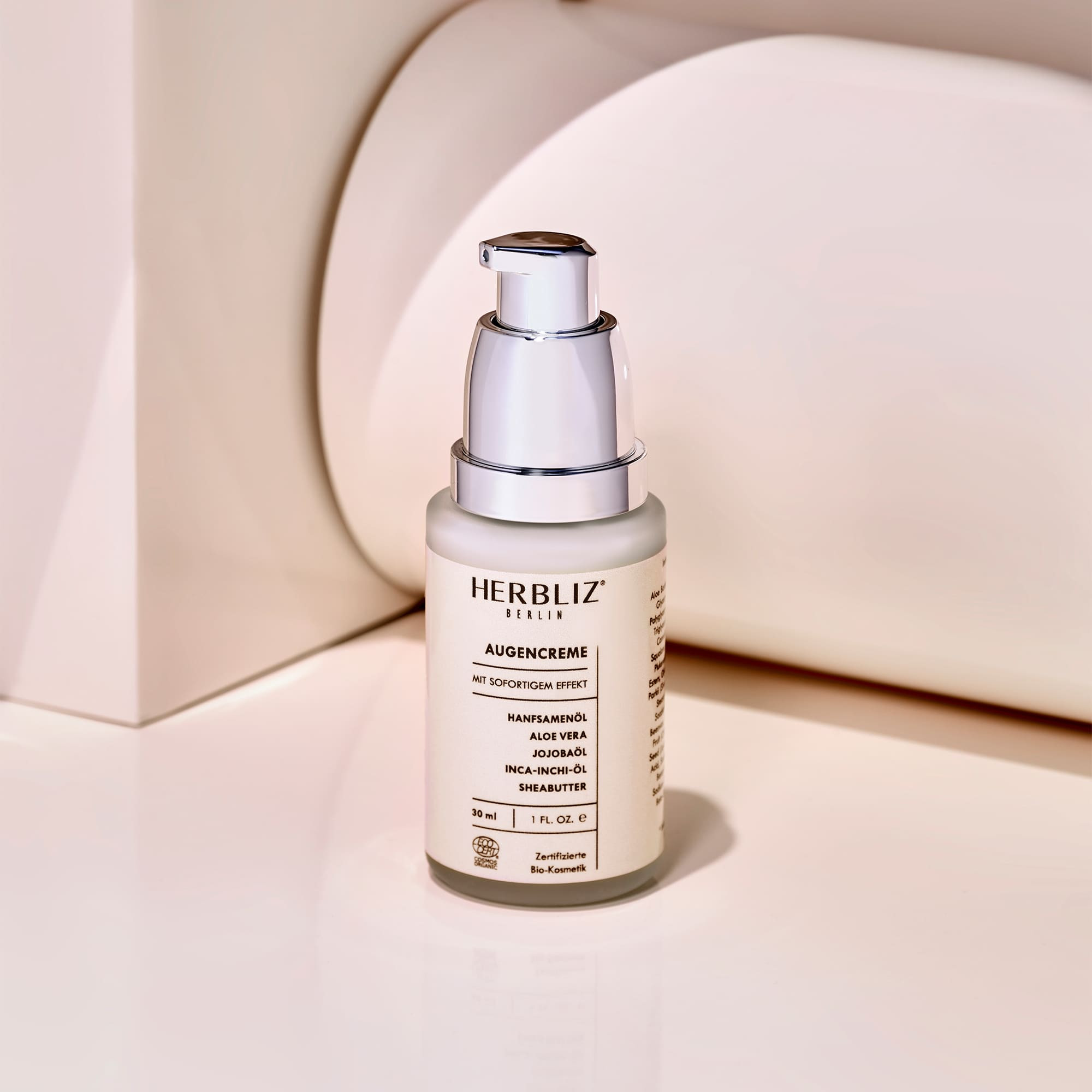 Крем під очі HERBLIZ усуває ефект втомлених очей та робить шкіру сяючою. Справжній вітамінний заряд для свіжого та пробудженого вигляду. Живильна конопляна олія забезпечує ідеальне співвідношення омега-3-6 навколо делікатної області навколо очей, а алое вера забезпечує ідеальне тривале зволоження. Для захисту чутливої шкіри навколо очей крем збагачений потужним антиоксидантом вітаміном Е, який бореться з вільними радикалами. Крем під очі сертифікований Cosmos Organic і не містить штучних консервантів і силіконів.