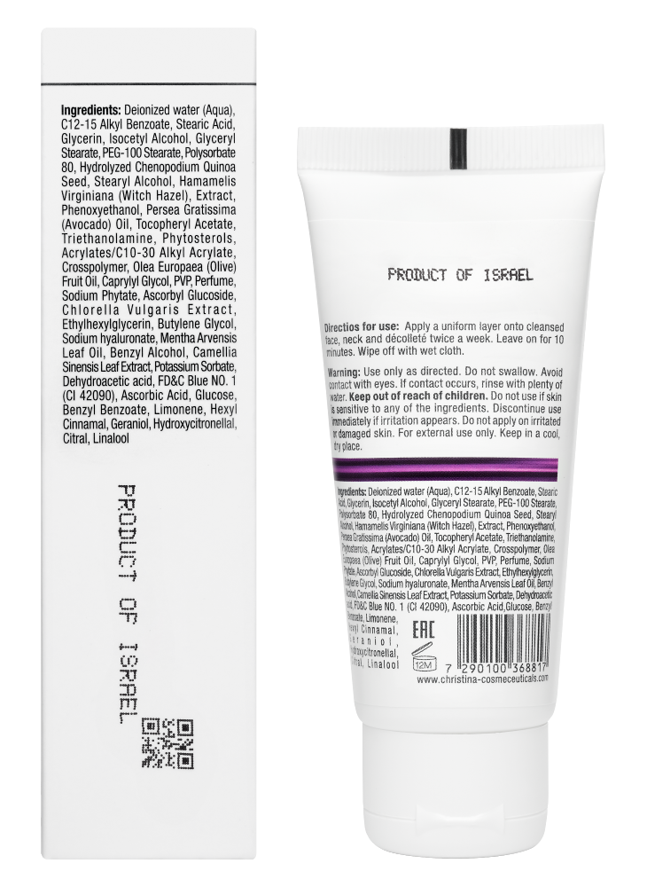 Нанесіть рівномірним шаром на обличчя, шию та зону декольте, залиште на 10 хвилин. Ретельно видаліть серветками, змоченими у теплій воді, або змийте.