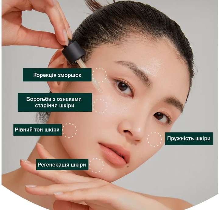 Увечері після використання тонеру нанесіть сироватку на шкіру обличчя, рівномірно розподіліть легкими масажними рухами. Для більш інтенсивної дії продовжіть догляд нанесенням нічного крему з ретинолом та пептидами або використовуйте свій звичайний зволожувальний крем.