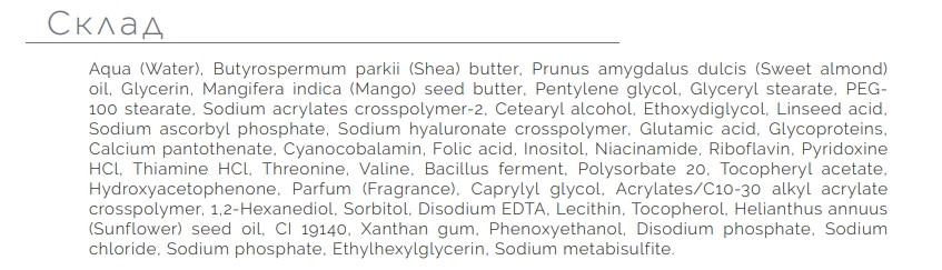Живильний і пом'якшувальний засіб для обличчя з насиченою, апетитною текстурою, що нагадує сорбет: солодкий, ароматний і багатий на натуральні масла та олії. До складу входять олії манго та ши, цінні своїми поживними, пом'якшувальними та зволожуючими властивостями, а також олія солодкого мигдалю - ідеальне поєднання, яке допомагає шкірі зберегти природну еластичність. 4 вітаміни (A, C, E і F), що входять до складу, відновлюють життєві сили шкіри та сприяють регенерації клітин.