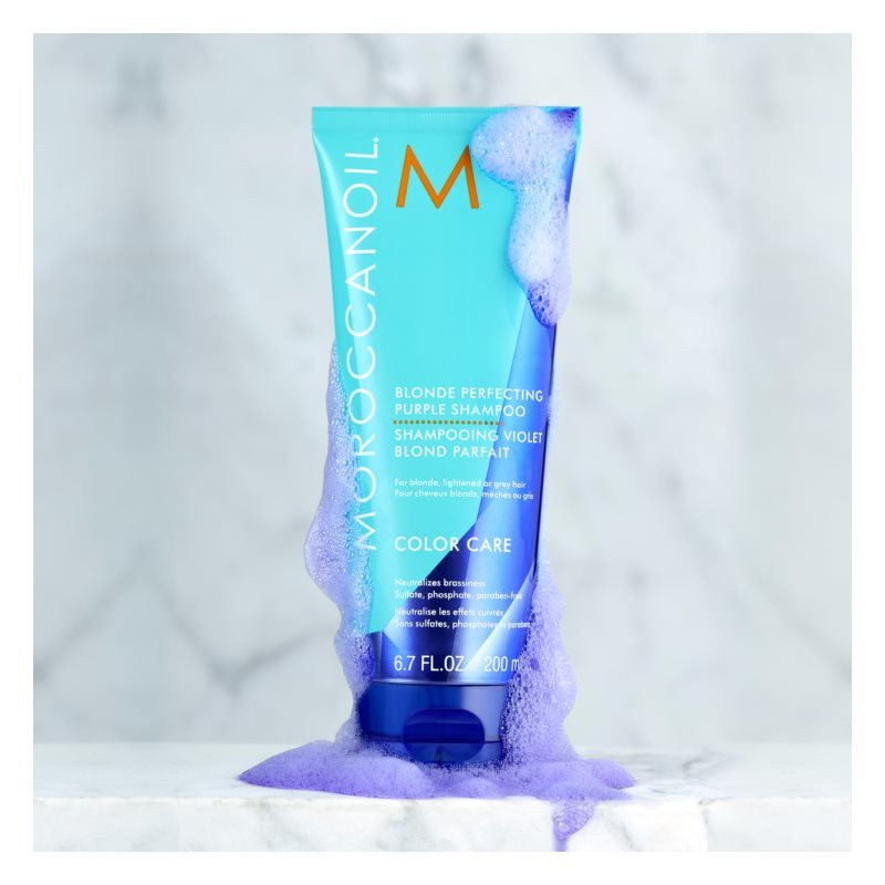 Тонізуючий шампунь із фіолетовим пігментом Moroccanoil Blonde Perfecting Purple Shampoo — цей продукт стане незамінним помічником для власниць світлих, освітлених і сивих волосся. Це професійний шампунь, що коригує тон, містить темно-фіолетові пігменти, які нейтралізують небажані жовті та помаранчеві тони, та допомагає підтримувати ідеальний колір волосся між відвідуваннями салону. Завдяки вмісту ArganID у складі тонізуючого шампуню, волосся відновлюється та зміцнюється зсередини. Не містить сульфатів, фосфатів та парабенів.