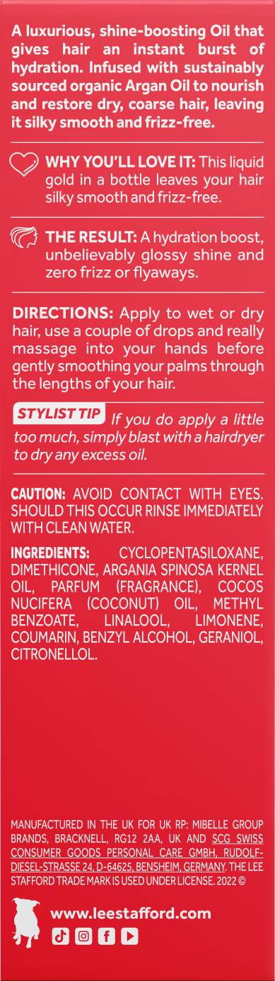 Побалуйте своє сухе волосся розкішним живильним продуктом Lee Stafford, наповненим органічною аргановою олією з екологічно чистих джерел для миттєвого розгладження волосся.