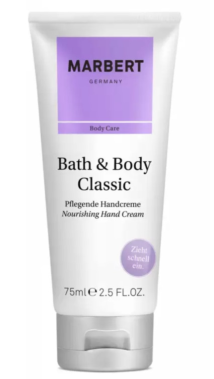 Поживний Крем для Рук Marbert Bath and Body Classic Nourishing Hand Cream (Німеччина) – професійна косметика на рослинних компонентах, глибоко живить шкірний покрив, усуває сухість, лущення та відновлює водний баланс. Концентрована формула зміцнює захисний шар зовнішніх факторів, добре захищає від несприятливих природних чинників. При регулярному застосуванні повернеться бархатистість, м'якість і шовковистість ручок, зникне сухість, лущення та стягнуте відчуття.