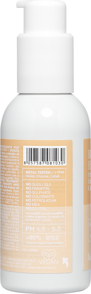 - Олія волоського горіха: багата на поліфеноли та натуральні антиоксиданти, сприяє довготривалому захисту від вільних радикалів, захищає косметичний колір, покращує еластичність і посилює блиск волосся.