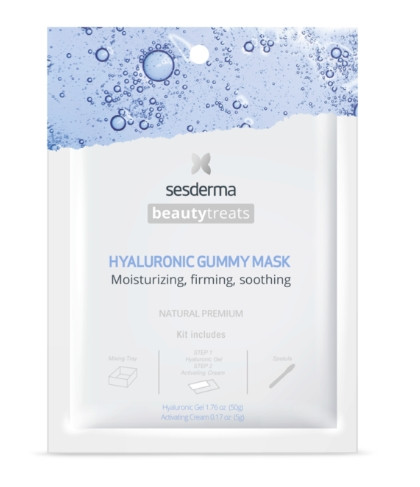 Зволожуюча альгінатна маска Sesderma Beauty Treats Hyaluronic Gummy Mask багата гіалуроновою кислотою та колагеном.