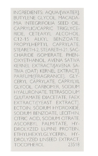 Основные компоненты: масло австралийского ореха, увлажняющий компонент с гиалуроновой кислотой, комплекс из экстракта овса против морщин, UV – фильтр, SPF – 4.
