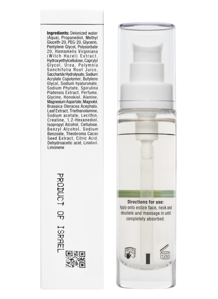 Экстракт семян какао уменьшает воздействие свободных радикалов при работе с гаджетами, предотвращая «цифровое» старение кожи. Комплекс компонентов натурального увлажняющего фактора обеспечивает длительное увлажнение кожи. Экстракты кейла и гамамелиса предупреждают возникновение воспалений и способствуют заживлению повреждений. Комплекс Microbiota regulator регулирует микрофлору кожи.