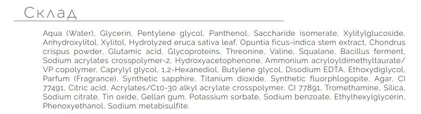 Экстракт опунции: Обладает противовоспалительным, смягчающим и антиоксидантным действиями. Эффективно борется с окислительным стрессом и воспалениями, вызванными ультрафиолетовыми лучами, восстанавливает должное увлажнение кожи.