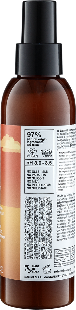 - защищает и увлажняет волосы во время и после пребывания на солнце.