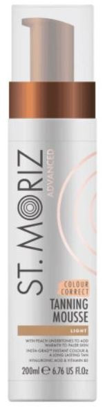 Автобронзат-мус для светлой кожи St Moriz Advanced Colour Correcting Mousse Medium 200 мл – новое поколение – моментально придает коже красивый и ровный натуральный оттенок загара. Подходит для лица и тела. Для всех типов кожи. Воздушная текстура позволяет наносить средство очень тонким слоем, превращая процедуру в удовольствие! Мусс моментально впитывается и быстро высыхает на коже. Обладает приятным и нежным ароматом. В составе гиалуроновая кислота и витамин В5. Закрепление оттенка загара происходит в течение 4-6 часов, загар держится от 5 до 10 дней.