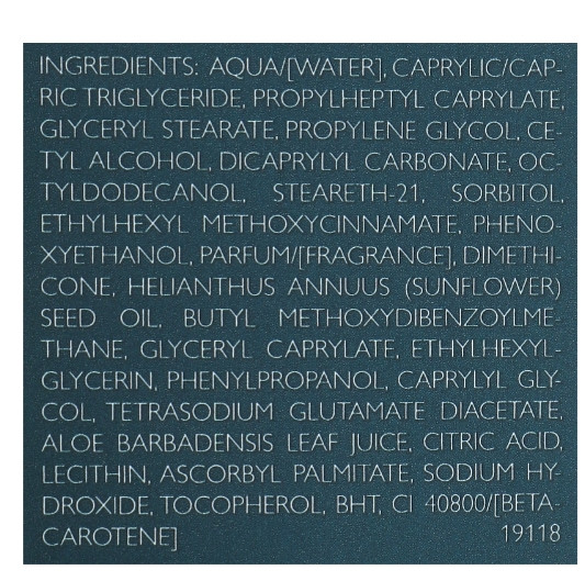 Активные компоненты: UVA/UVB защита,SPF 3, алоэ вера, каротин.