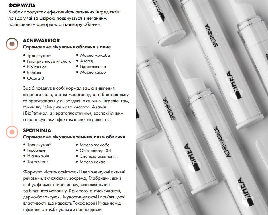 Достаточно сказать, что AcneWarrior – это истинный воин против прыщей, угрей, воспаления и сыпи. Его формула являет собой уникальное сочетание передовых активных компонентов. Глицирозная кислота действует как эффективное противовоспалительное средство, обеспечивая защиту кожи от вредных бактерий. Биоретинол способствует нормализации выработки себума, а ExfoLux и Омега-3 предотвращают засор пор.