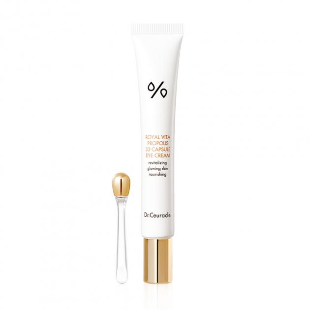 Комбинация прополиса и коллагеновых капсул в новой креме Dr.Ceuracle Royal Vita Propolis 33 Capsule Eye Cream делает кожу более упругой и плотной, восстанавливает целостность кожных покровов, выравнивает рельеф, ускоряет процессы обновления.