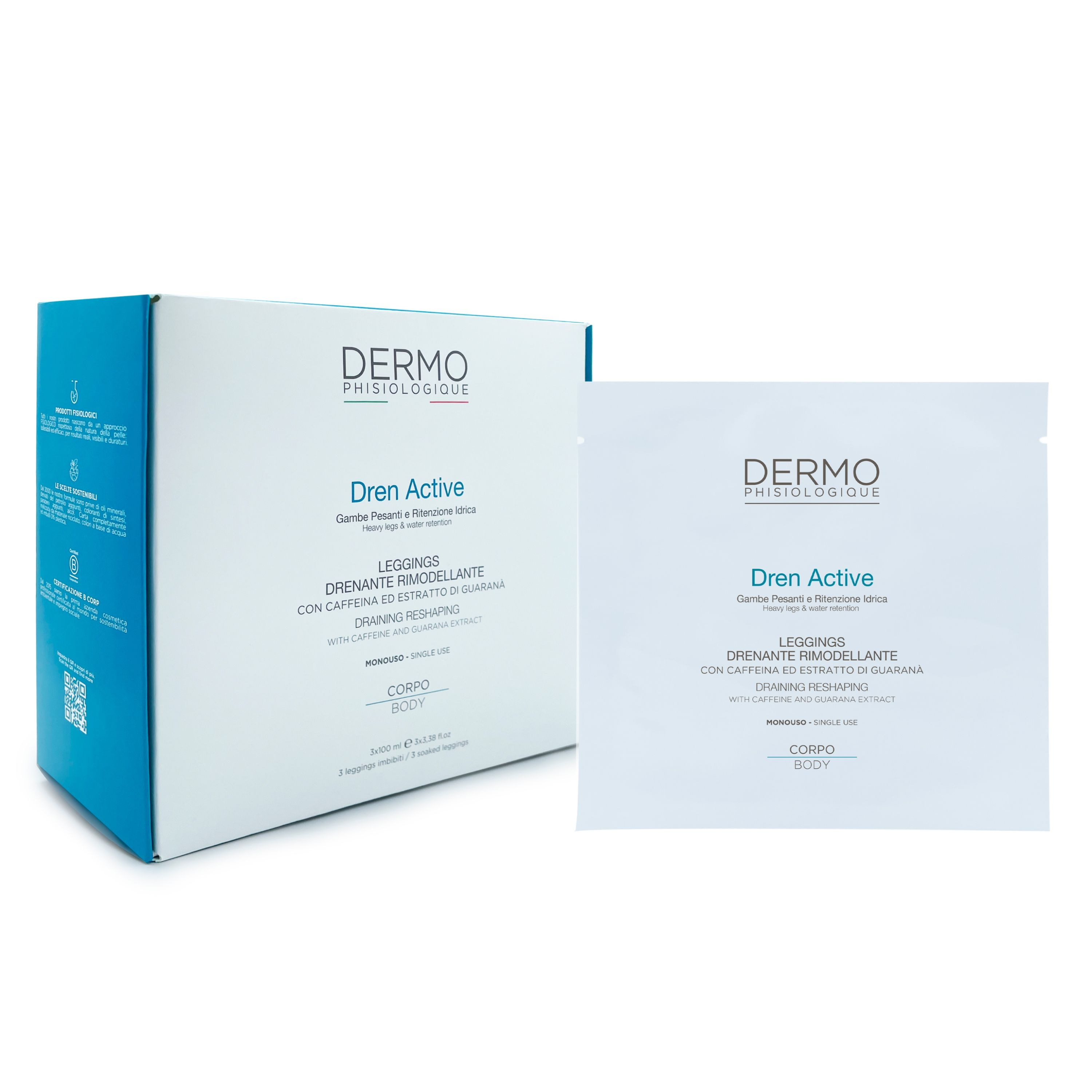 Они сочетают мягкую компрессию с постепенным высвобождением активных косметических ингредиентов, что обеспечивает мощное тройное действие: дренаж, моделирование и улучшение микроциркуляции.