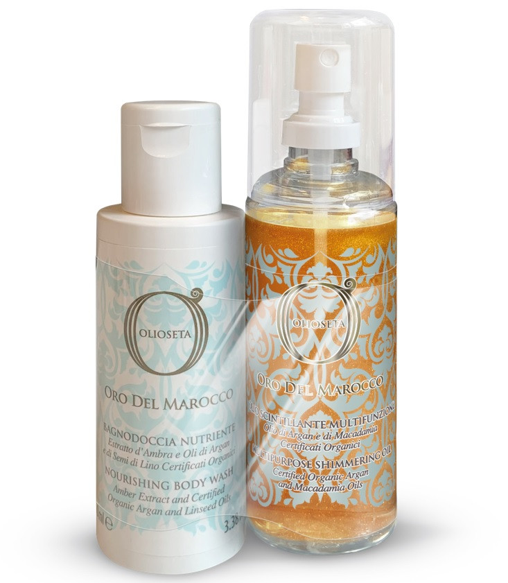 Благодаря светоотражающим и мерцающим микрочастичкам придает коже легкий сияющий вид, как будто к ней только что прикоснулось солнце. Обволакивает тело культовым ароматом линии Oro del Marocco.