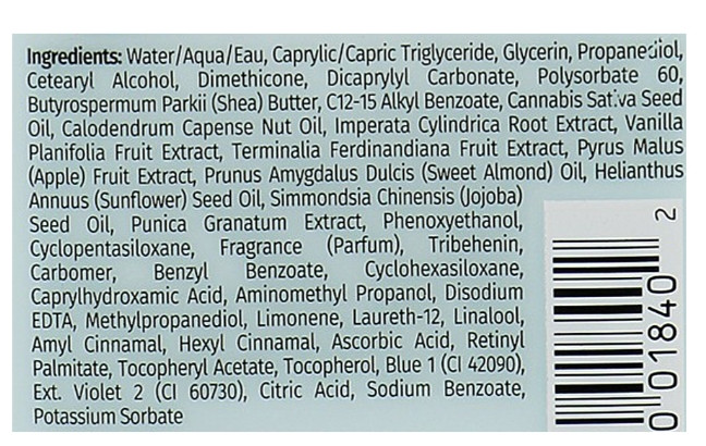 Активные компоненты: масло и экстракт семян конопли, увлажняющий комплекс на основе масла янгу, экстракта яблока, императы цилиндрической.