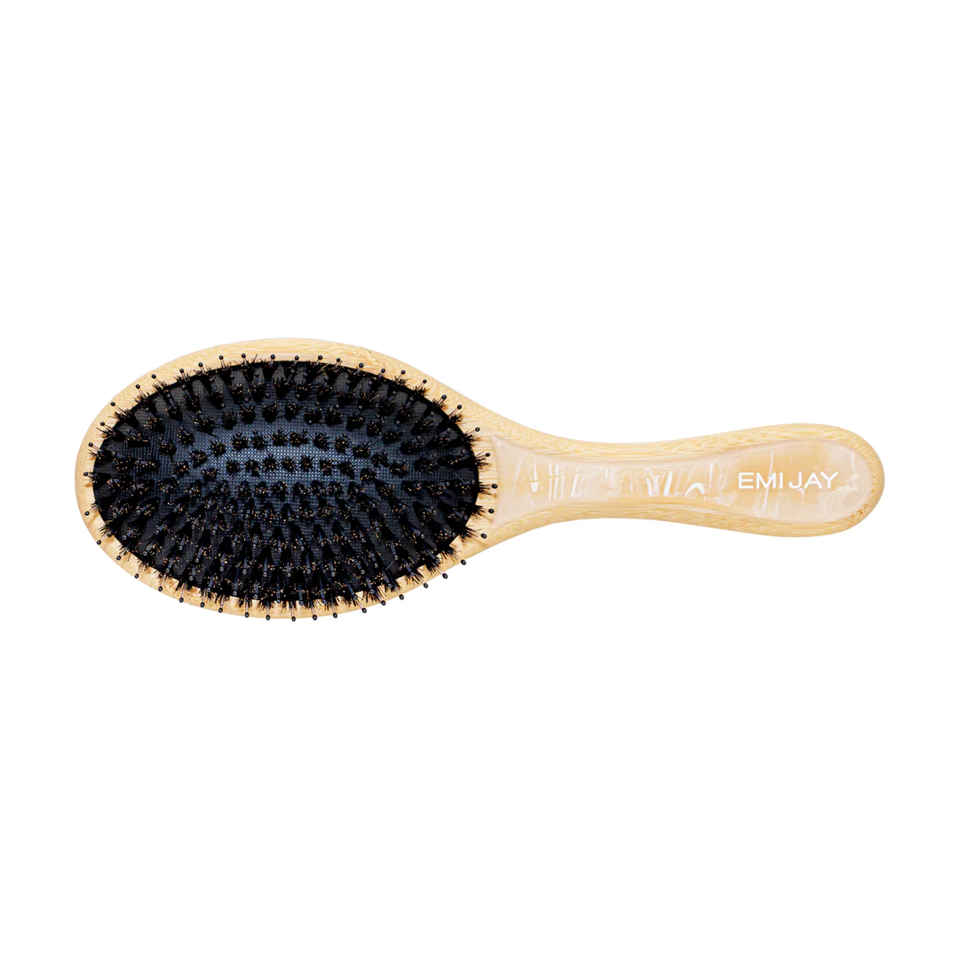 Овальная щетка для волос от Emi Jay, двойная щетина которой работает вместе, создавая шедевр укладки. Эта щетка изготовлена с высокой точностью и имеет гармоничную смесь нейлоновых щетинок для легкого расчесывания, дополненных щетиной кабана, которая придает блеск и помогает избавиться от спутывания волос. Она легко адаптируется к потребностям любого типа волос, что делает ее незаменимым помощником на каждый день для ищущих безупречный и изысканный уход за волосами.