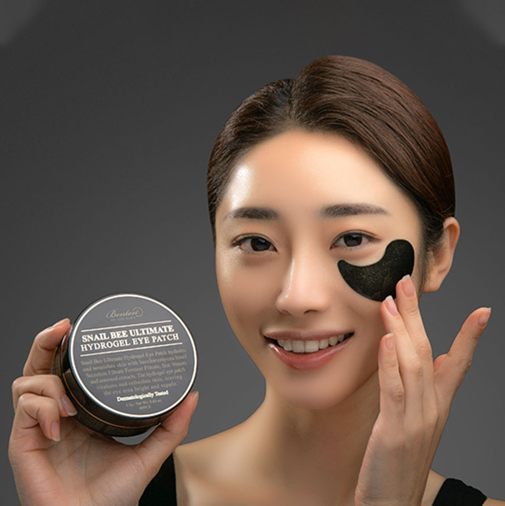 Гидрогелевые патчи интенсивного действия с ферментированным муцином улитки и пчелиным ядом от Бентон имеют удобную каплевидную форму, хорошо пропитаны, не сползают и не тянут веко. Не раздражают чувствительную кожу вокруг глаз и не имеют отдушки. Дерматологически протестированы. Не тестируются на животных.