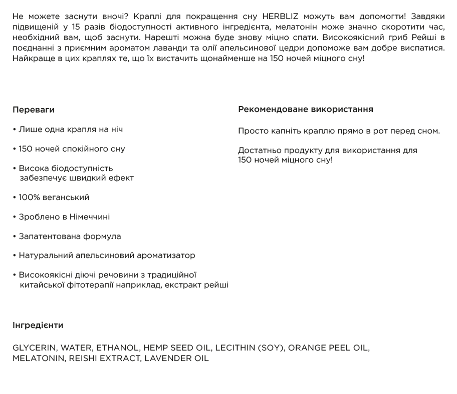 Просто капните каплю прямо в рот перед сном. Достаточно продукта для использования для 150 ночей крепкого сна!