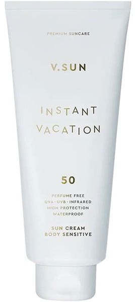 Солнцезащитный крем для тела V.SUN sun cream body sensitive SPF 50 Perfume Free 200 мл - надежно защищает от солнечных ожогов, UV-A, UV-B и инфракрасного излучения, обеспечивая высокий уровень защиты от негативного воздействия на дерму, предупреждая появление солнечных ожогов. Входящий в состав средства эктоин препятствует повреждению клеток, укрепляет защитный барьер, возвращает эпидермису упругость и эластичность, сокращает потерю воды. Токоферол ускоряет заживление микротрещин и мини-утро, лишает сухости и шелушения, освещает пигментные пятна, замедляет процессы старения. .
