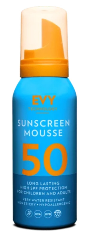 Evy Technology - Солнцезащитный мусс - солнцезащитный крем в виде пенки. Содержит химические фильтры, которые защищают кожу от УФ-излучения, нейтрализуют вредное влияние свободных радикалов, тем самым предотвращая преждевременные признаки старения кожи. Витамин Е имеет защитное, регенерирующее и антивозрастное действие. Витамин С осветляет и усиливает действие УФ-фильтров, а также выравнивает тон кожи.