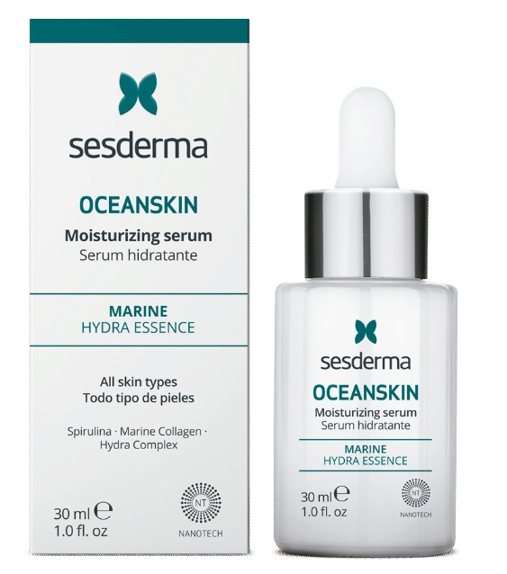 Спирулина, коллаген и морской эластин, экстракты водорослей и икры увлажняют, регенерируют и восстанавливают кожу. Сыворотка Sesderma Oceanskin Moisturizing Serum предназначена для сухой и чувствительной кожи, а также идеально подойдет для кожи с возрастными изменениями.