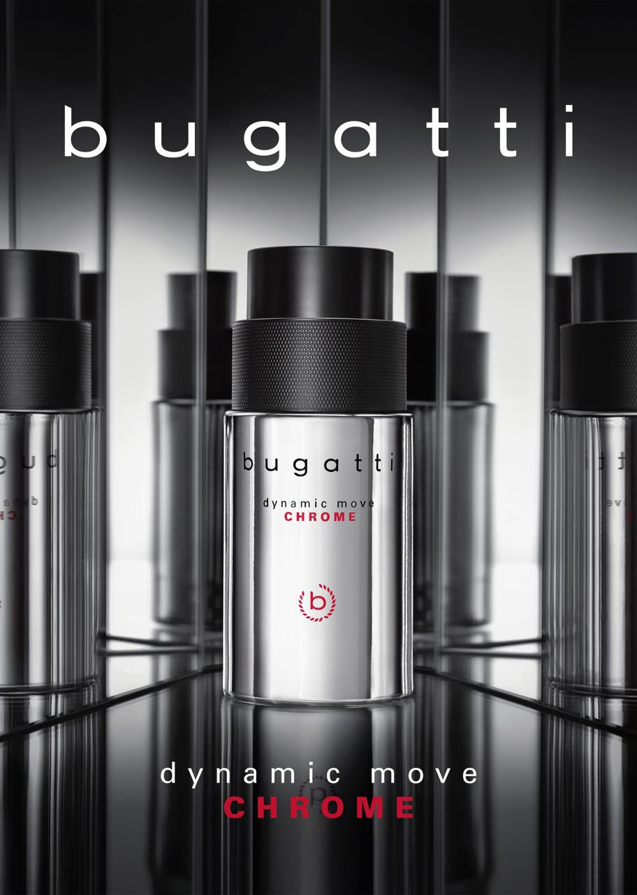 Bugatti Dynamic Move CHROME характеризуется пряным, древесным ароматом. Уже в верхней ноте ощущаются волевые, бодрящие земляные ноты и элементы свежего лавра.