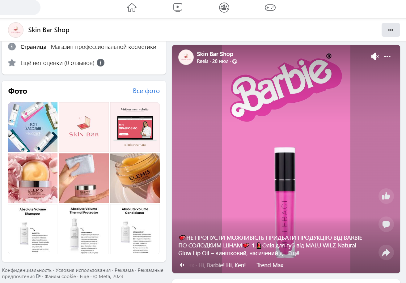 Інтернет-магазин skinbar.com.ua в соціальних мережах