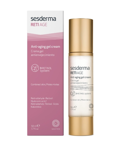 Зволожуючий крем-гель для комбінованої шкіри Sesderma Reti Age містить ексклюзивний комплекс із трьох типів ретинолу, який надзвичайно лагідний до шкіри. Засіб поступово вирівнює тон обличчя, підвищує пружність шкіри, а також значно зменшує появу зморшок.