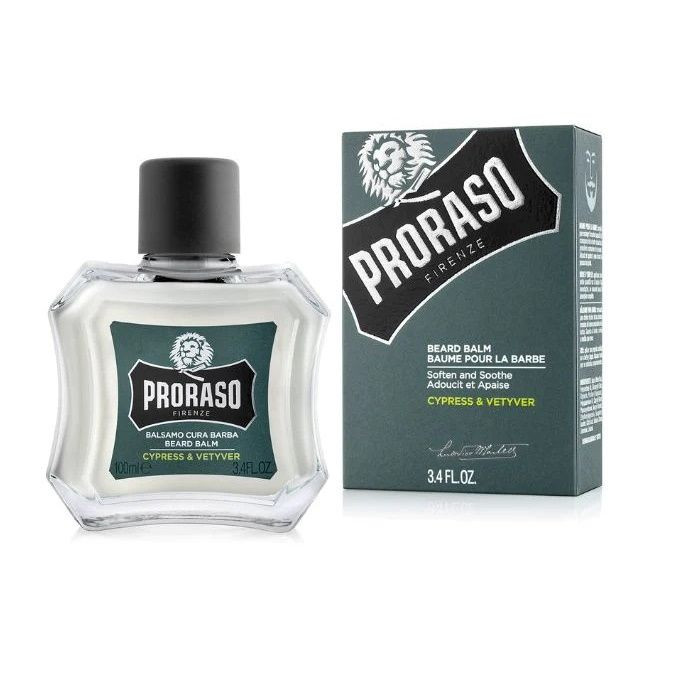 Бальзам для бороди Proraso Cypress&Vetyver - це поєднання комфортного догляду та неперевершеного аромату. Унікальна формула бальзаму насичує бороду живлющою вологою, робить її м'якою і приємною на дотик, надає матовості. Сприятливо засіб позначається і на стані шкіри, усуваючи запалення, свербіж і почервоніння. Бальзам для бороди Proraso пом'якшує бороду й освіжає шкіру, знімаючи дратівливу сверблячку і відчуття дискомфорту під час росту бороди. Разом з цим, бальзам зволожує шкіру, після чого минають лущення і подразнення.