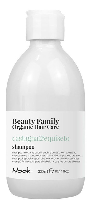 Делікатно очищає ламке й ослаблене волосся. Формула містить органічний екстракт каштана, який живить та регенерує волосся, і органічний екстракт хвоща, багатий мінеральними солями, антиоксидантами, гіалуроновою кислотою та вітамінами. Шампунь робить волосся м'яким, відновлює його життєву силу та природний блиск.