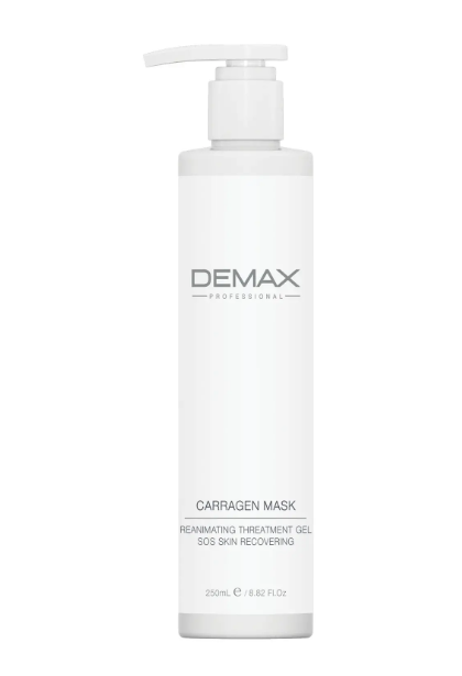 До складу реанімуючої маски Demax входить карраген, який дає потужну протизапальну дію. Разом з цим має регенеративні та пом'якшувальні властивості. Гель-маска наповнена активними імуностимуляторами. Засіб прибирає наслідки подразненої шкіри, зволожує її та знімає больові відчуття. Маска спрямована на активізацію процесу лімфовідтоку. Освітлює епідерму, усуває та запобігає пігментації.